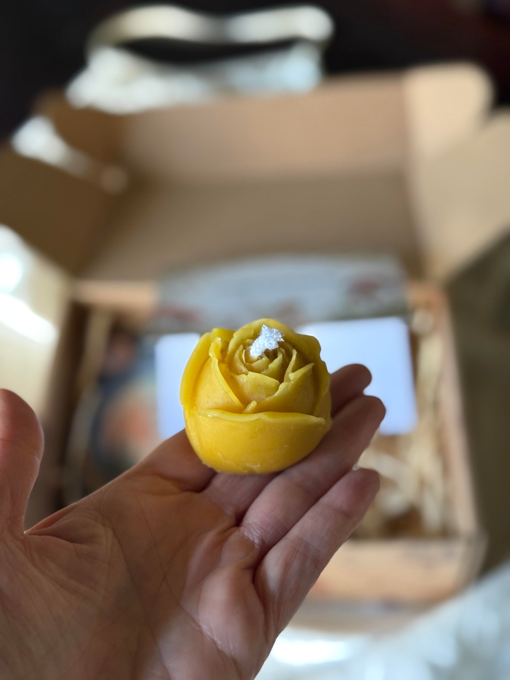 - A pure Australian beeswax candle — handmade with love, carrying the beautiful honey scent of pure beeswax.